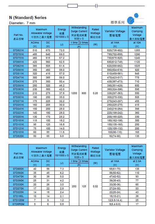 ऑटोमोटिव इलेक्ट्रॉनिक डीसी सर्किट 12 वी सुरक्षा varistor 07d270k